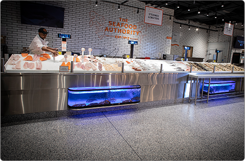 Citarella, Hudson Yards, NY • Custom Open Display Case with 2 Built-In 6' Lobster Tanks
