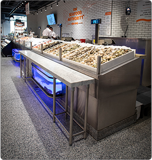 Stark seafood display cases are also the industry’s finest. They are designed, developed and engineered with features that help improve your bottom line. Such as money-saving, energy-efficient, dependable operation, 24/7/365. Heavy-duty, stainless-steel construction to withstand the harshest treatment in the most unforgiving environments. Commercial-grade waterproof LED lighting in a variety of colors and hues available to enhance the vibrant colors of your product. As well as built-in misting and fogging features.