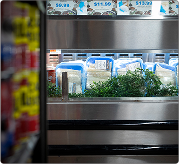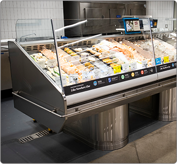 Plus, our customized cooling system is so dependable, our display cases require no ice — that’s right! This eliminates the labor and downtime it takes to set up, maintain and tear down that frozen mess each day.